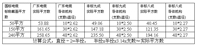 一般在广东地区来说的话,如果在购买大于50平方以上的铜芯电缆就必须要注意啦,一些做非标电缆的厂家往往就是在
